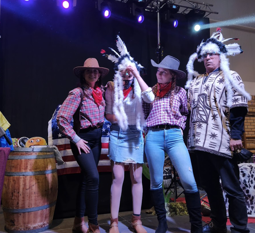 PERO VICKY, QUE ES MUY DIVERTIDA, SOLUCIONA RÁPIDAMENTE LA PAPELETA PROPONIENDO UNA FIESTA AL ESTILO “WESTERN” CON TODOS LOS ELEMENTOS QUE NOS HA TRAÍDO DESDE USA. CON MÚSICA COUNTRY EN DIRECTO, TRÍCOLO TRACO NOS INVITA A UNA FANTÁSTICA FIESTA VAQUERA.